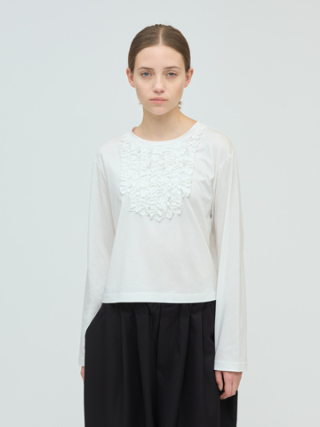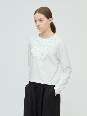 身頃とは別の生地に変えてデザインした、襟と袖にプリーツをあしらった上品な1枚。 襟をだしたり、袖口を見せたりインナー使いとしても活躍していただけるシャツです。