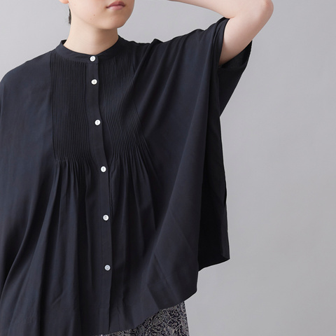 前身頃には、手仕事で施されたピンタックが並び、繊細さと温かみがあります。