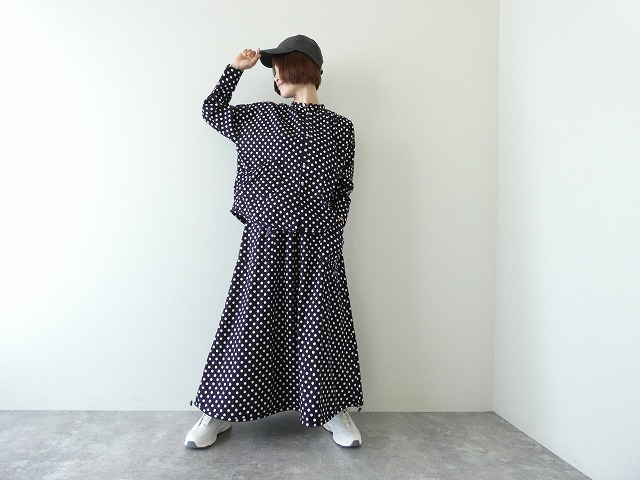 グレーとネイビーの抜染水玉 スタンド背タックシャツ