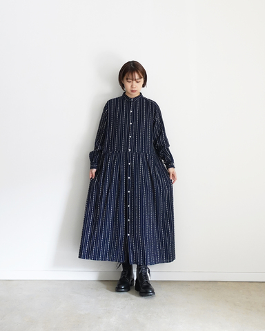 同じストライプパターンでも印象が違うインディゴシャツドレスです。