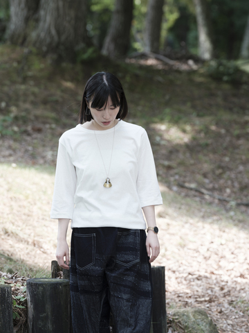 身長157cm サイズS オフホワイト着用 (パンツ:deniime zengo / ネックレス:鶫 tsugumi 銀小物製作所 bobo)