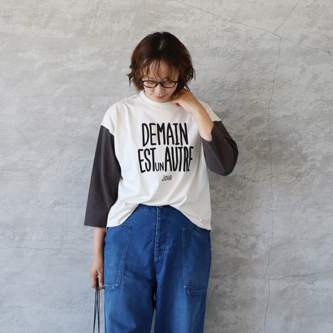 BLUE LAKE MARKET|アメリカンドライ天竺2 バイカラーラグランプリントプルオーバー Tシャツ カットソー