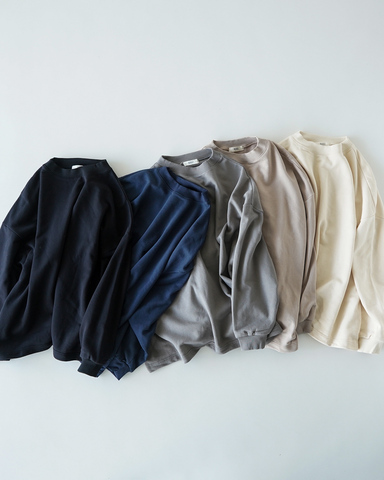 30/10セントラル裏毛は、ふんわりとした柔らかさと吸湿性・保温性を兼ね備え、秋冬のデイリーから春先までロングシーズンで活躍します。リラックス感がありつつ、きれいめな印象も叶える万能トレーナーです。