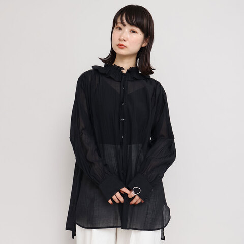 iki|キュプラコットンサテントリプルワッシャー フリルカラーブラウス 3101BL011252