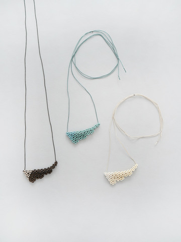 レースモチーフのような、きめ細やかなデザインのネックレスです。grinのシーズンテーマ"tone"からイメージし、色がゆっくり移り変わる様子を微配色で表現しました。