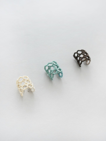ビーズ作家のakiko tamaiさんとのコラボレーションシリーズです。透かし編みのような、レースのような、繊細な表現で作られたアクセサリー。ひとつひとつ時間をかけて、丁寧に手作業で作られています。
