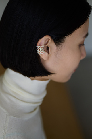 程よいボリューム感で、耳元を華やかに印象づけるイヤーカフ。レース編みのようなデザインで軽やかな雰囲気があり、ニットなど厚手のアイテムとの相性も良いです。