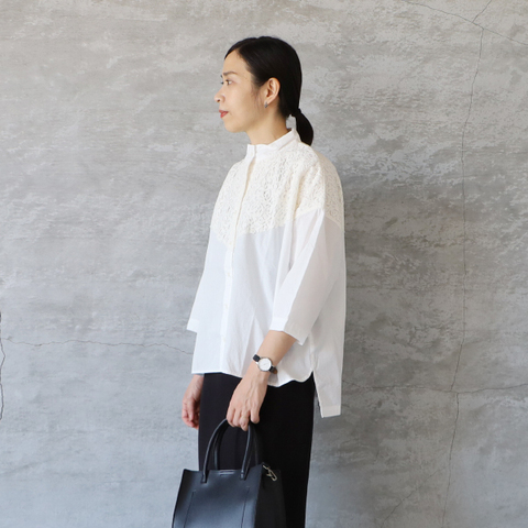 sabbatum|リサイクルポリエステル45Sブロード配色ステッチシャツ
