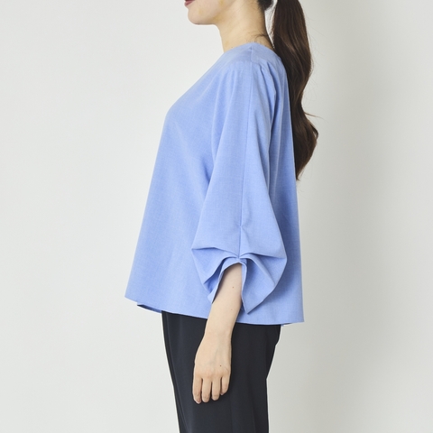 寒暖差のある季節に活躍するブラウスを、との思いから、袖は七分丈にしました。袖口にはタックを入れているのですが、とろみのある生地との相性は抜群で、タックによって美しい陰影が生まれます。