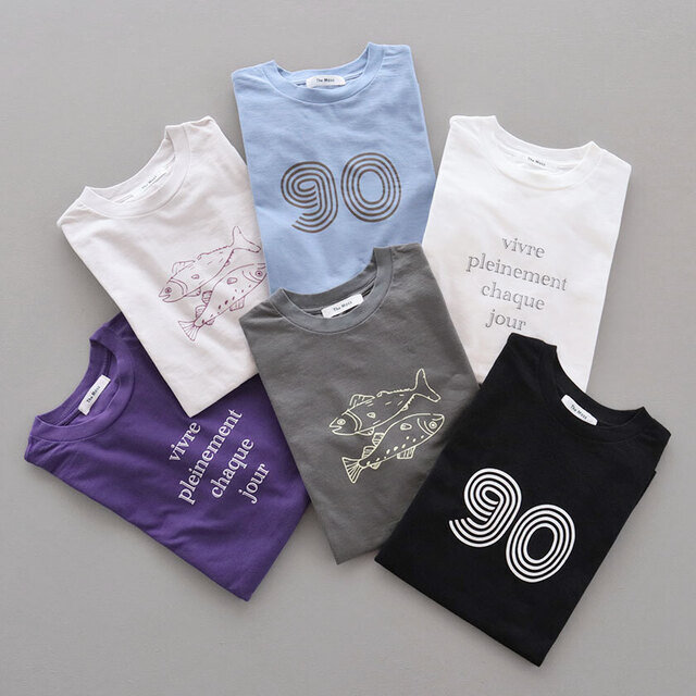 フロントのデザインは、ラフに手書きで描かれた魚柄やフランス語で"毎日の暮らしが楽しくなる"という意味のメッセージプリント、インパクトのあるナンバープリントと個性豊かな3種類。さらっと1枚でコーディネートの主役にしたり、シャツやサロペットからちらりと覗かせてレイヤードを楽しむのもおすすめです。