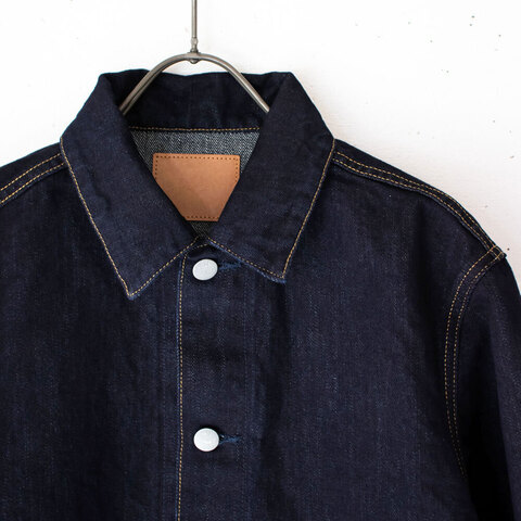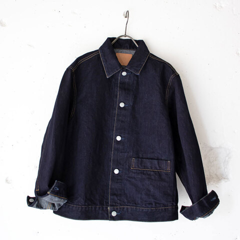 和紙の糸とコットン糸をミックスしたオリジナルセルビッチデニムを使用したデニムジャケットです。