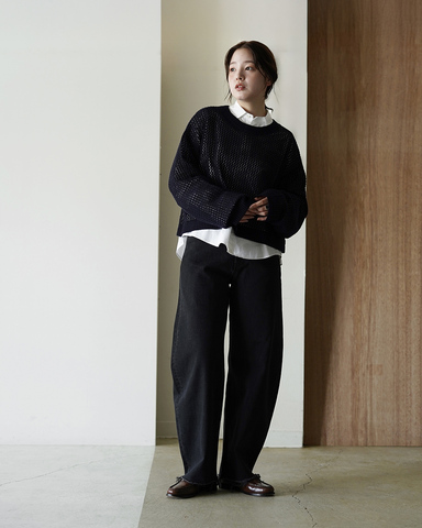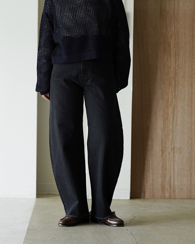 深みのある黒を保ちながらも表情は柔らかく、デニムの持つカジュアルな魅力と、デニム見えしすぎないクラシカルな上品さを兼ね備えています。様々な着こなしをさりげなく引き立てる一本です。