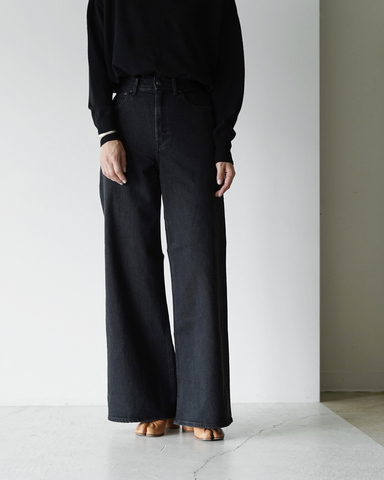 深みのある黒を保ちながらも表情は柔らかく、デニムの持つカジュアルな魅力と、デニム見えしすぎないクラシカルな上品さを兼ね備えています。様々な着こなしをさりげなく引き立てる一本です。