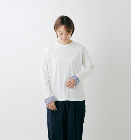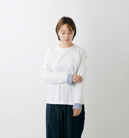 tumugu|コットン ノヴァテレコ ハイネック カットソー フリル 長袖Tシャツ トップス 重ね着 TC20103-WA 0917 ツムグ