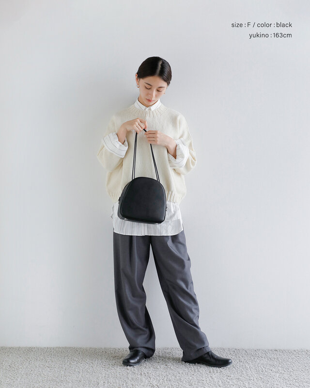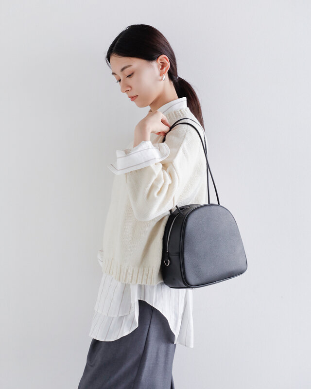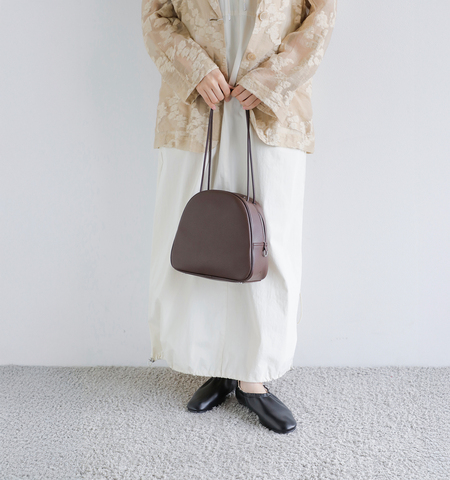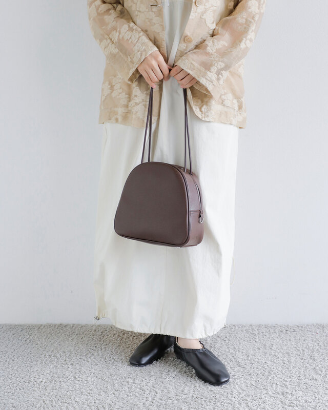 丸みのある独特なフォルムで、やさしい印象を演出するショルダーバッグです。
