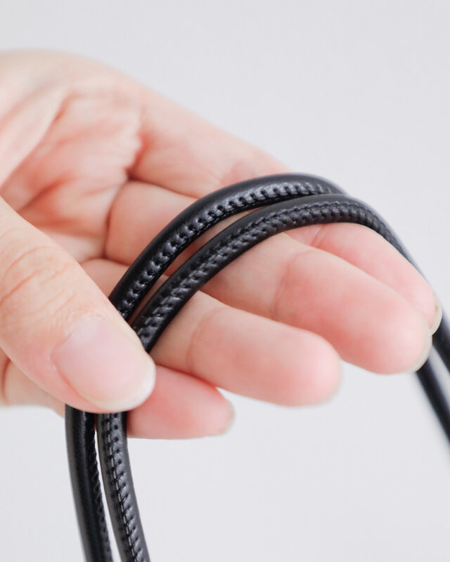 素材は合成皮革を使用しており、驚くほど軽く、雨の日でも使いやすいのも嬉しいポイントです。ストラップは内側から長さ調整が可能で、ショルダーでも斜め掛けでも使える2WAY仕様。シンプルながら洗練されたデザインで、カジュアルからきれいめスタイルまで幅広く活躍します。