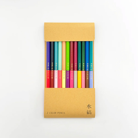 柔らかな書き心地が特徴のタイの2色いろえんぴつ。ニュアンスカラーや珍しい色をチョイスした水縞オリジナルカラーで復刻しました!ちょっとしたイラストを描くのにはもちろん、数本をペンケースに忍ばせて手帳のお供にしても良いですね。素敵な色の組み合わせを是非お楽しみください。