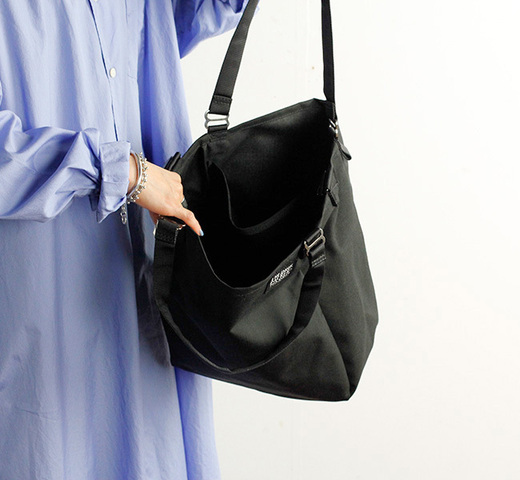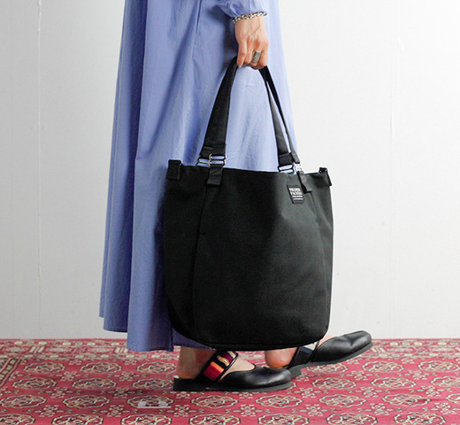 表地 に 1000デニールのUSAコーデュラナイロンを使用したトート。ハンドルには25mm幅のチューブ状ナイロンを使用。インナーにウレタンを装備しているので、柔らかな握り心地です。