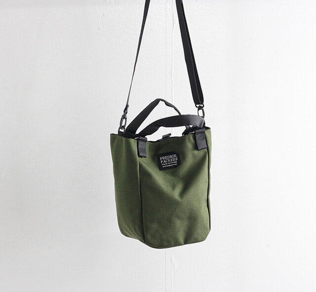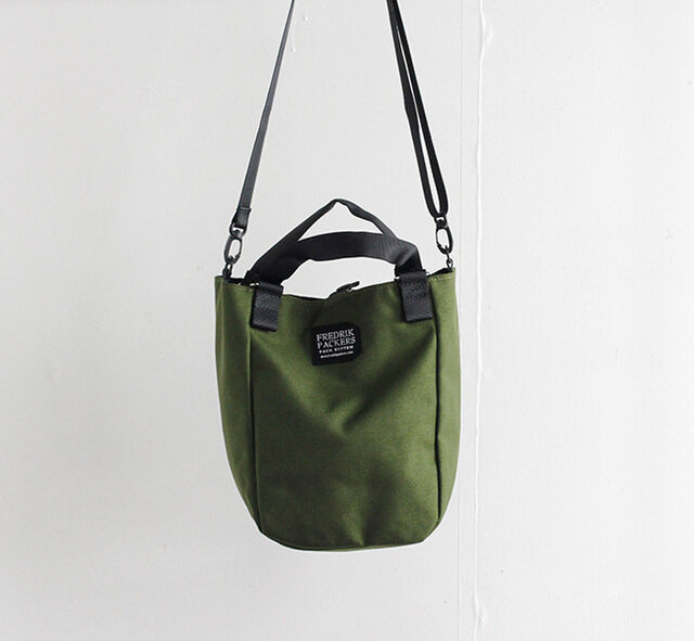 フレドリックパッカーズ入荷しました。手持ちが出来るハンドルと、斜めがけにも対応可能なショルダーストラップを装備した2WAY仕様のミニトート。マチ幅13cm、高さ25.5cmで500mlのペットボトルなども立てて収納可能。 25mm幅テープタブで本体の口を固定可能。