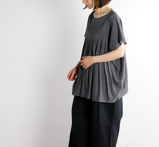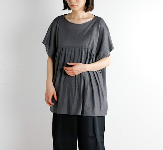 胸元によせたギャザーが柔らかな印象のプルオーバー。