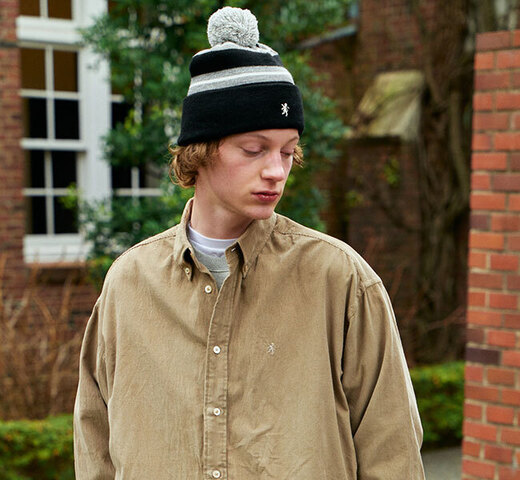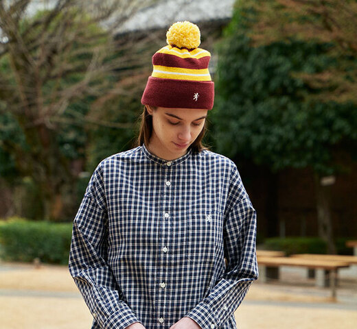 ラグビーのサポーターグッズから着想を得たニットキャップ。 ボリューム感がありますが、蒸れにくい薄地の生地を使用しています。