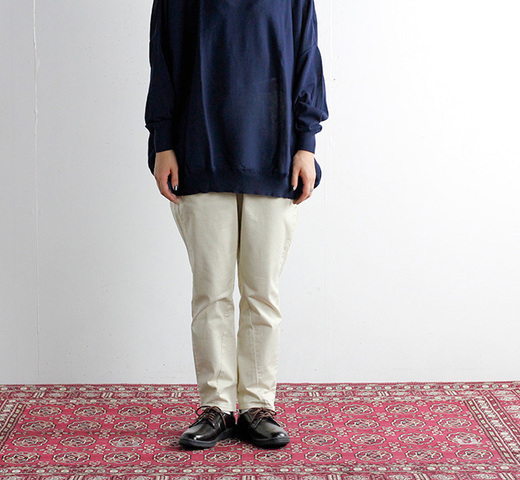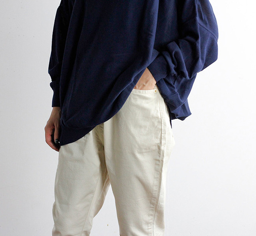 お尻周りに独特な丸みのあるエッグシルエット。膝から裾にかけてはすっきり細身ラインのエッグジョッパーズパンツ。 ウエストは紐で調整できるイージー仕様です。 ストレッチの効いたチノ素材で適度な伸縮性もあり、穿く程に身体に馴染みます。