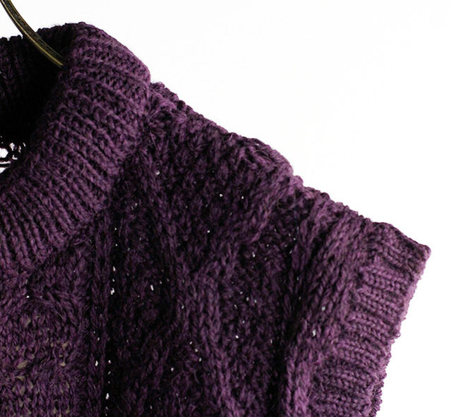 素材は、ウール100%の糸を使用しているので、保温性・撥水性に優れ、しっかりとした編み地ながら、柔らかな着心地が魅力。
