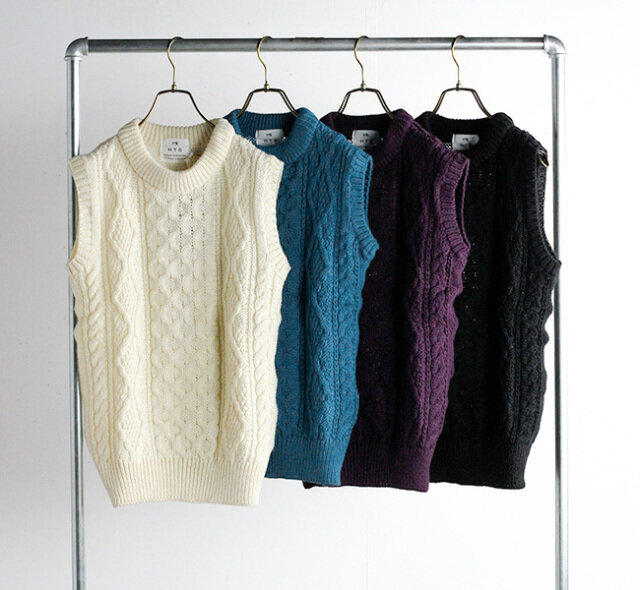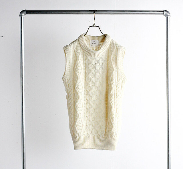 HTS(エイチティーエス)の2022A/Wコレクションより、アラン編みのベストが入荷しました。