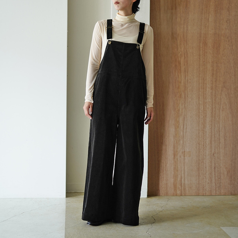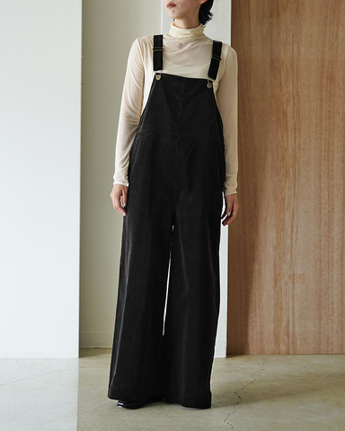 カジュアルな印象のサロペットを、上質な素材でシックにアップデート。