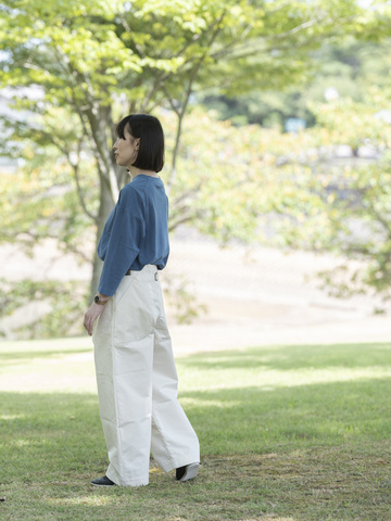 身長157cm サイズ2 ブルー着用 (パンツ:HW wide trousers 備前壱号 XSサイズ)