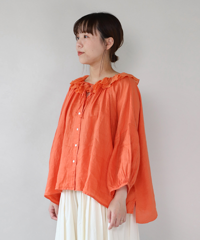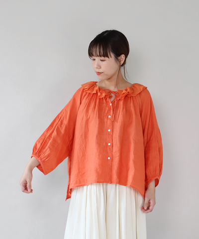 TUTIE.|-土へ還る-リネンベンガラ染めギャザーブラウス シャツ
