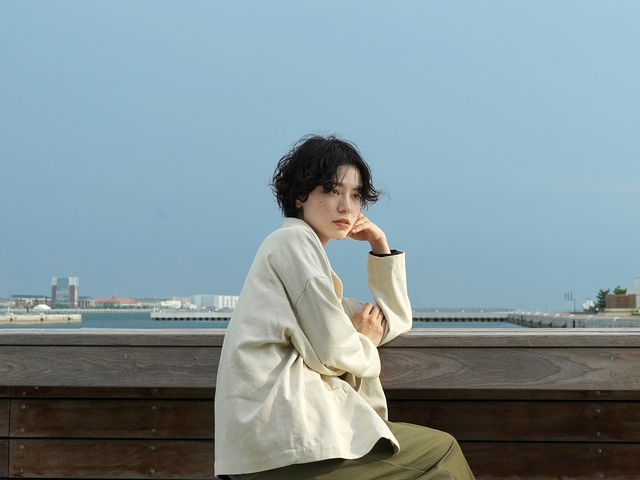 着用カラー:アイボリー、モデル身長:162cm