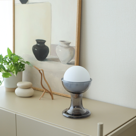 カラフルなベースとボール型のシェードは吹きガラスです。