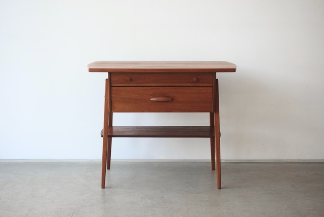 ソーイングテーブルという名前にとらわれず、サイドテーブルとして、散らかりがちなアレやコレを収納する便利スペースとして、日々の暮らしで大きく役立つ小さな一台です。