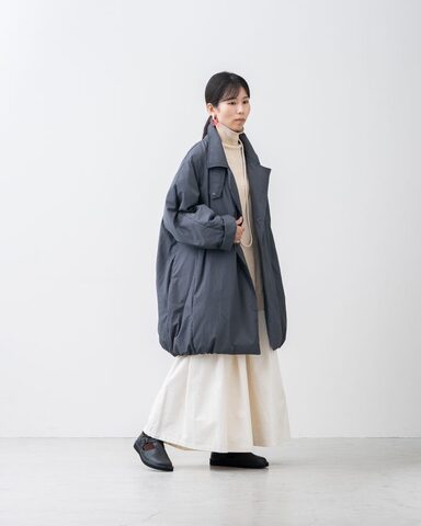 裾はシャーリングゴム仕様で、ボリュームを抑えたシルエットに。