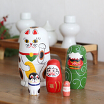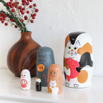 こんにちは!Figueです。 新年を彩る、木のぬくもり感じる猫のお正月マトリョーシカが入荷しました。 鯛や招き猫、だるまなど縁起物を持った猫たちが次々と現れる、手のひらサイズの木製マトリョーシカ。 玄関やリビングにそっと飾るだけで、お正月の華やかさと縁起の良さをプラスできます。
