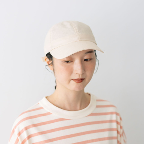 さらっとした綿麻素材で通気性抜群。清涼感&清潔感のある素材です。厚すぎないので気軽にどんなシーンにも被っていただけます。