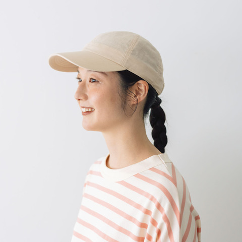 極力スポーティーになり過ぎないよう、鳩目(通常パーツごとについている穴)をなくしたり、全体的に柔らかさを出すために芯を貼らない製法にしたりと、当たり前と思われる部分に立ち止まり、細かな部分に工夫をくわえることによって、くらすことらしいキャップに。