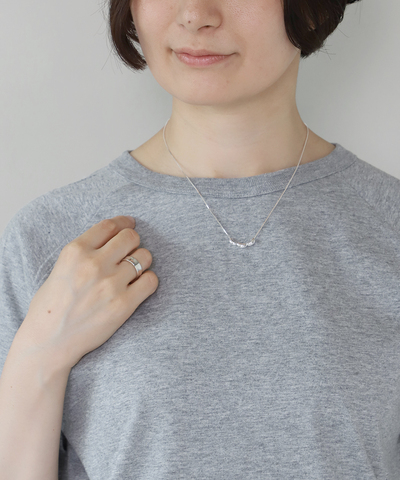 ふっくらとした半月型のモチーフが3つ並んだシルバーのネックレス。