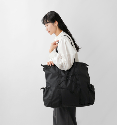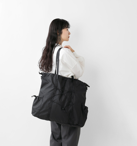 機能的かつデザイン性のあるELLIKERらしいアイテム。 カジュアルなトートバッグのルックスに、ELLIKERを象徴するデザインのボトルポケットやループウェビングなどが付属し、開口部はしぼることができるトートバッグです。
