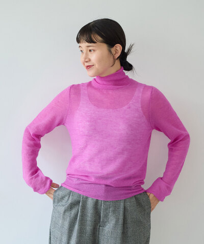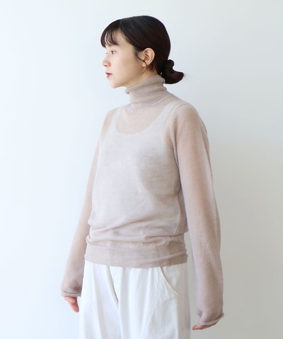 透け感とぬくもりをまとう、キッドモヘアハイネックニット