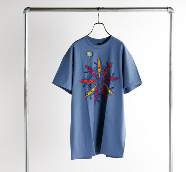 コットン100で滑らかな肌触りでプリントされた部分も柔らかく着心地がとても良いTシャツ。 UNISEXで着ることができ、手の込んだアートを感じられるプリントです。