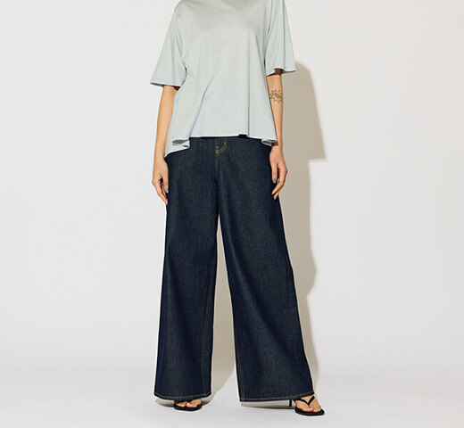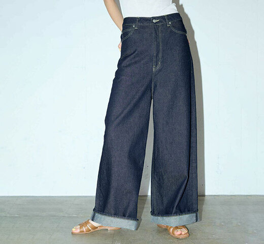 MIDIUMISOLIDの定番デニムのハイウエストワイドデニムです。落ち着きのあるインディゴは大人のキレイ目カジュアルを表現。ゆとりのあるワイドなシルエットが印象的で存在感のあるデニムスタイルを演出します。裾を折り返すと足元に重心が出て素敵です。ストレッチは効いておらずハリのある自然な風合いがあり洗っていくごとに独特の色落ちの変化を楽しめます。黄色いステッチ糸を使用。ベルト使いができサイズ展開も広くデザインした今季お勧めのデニムパンツです。
