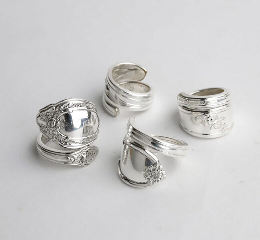 MarchelloArtのスプーンリングは、ヴィンテージの銀メッキのティースプーンからハンドメイドで作られています。