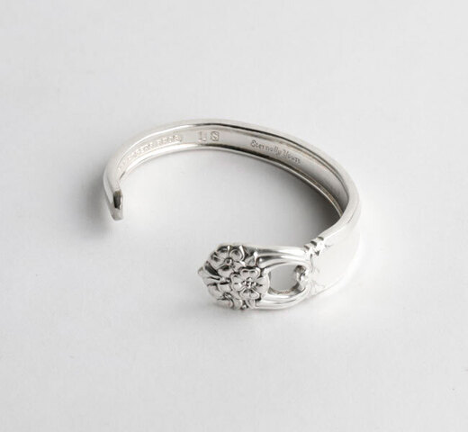 リサイクルされたカトラリーからハンドメイドで作られたバングル。