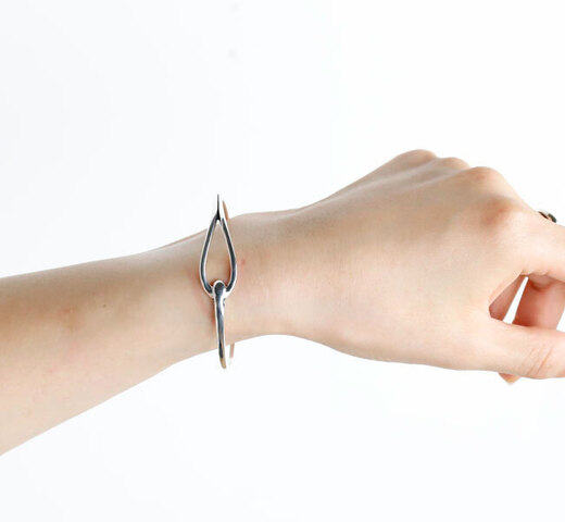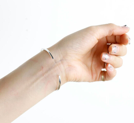 ”BANGLE ”925 Silver。 1つで身に付けても雰囲気十分。 時計と組み合わせたりするにも良いです。 素材にはsilver925を使用しており、耐久性が高く、上品な光沢感のある質感が特徴。 程よく曲線を描いていることで、立体感のある仕上がりに。 癖の少ないデザインのユニセックスアイテムです。