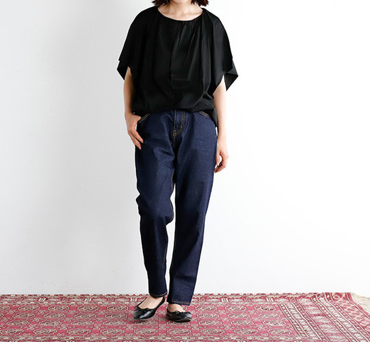 ハイウエストですのでジャストウエストで穿けばスタイリッシュに、腰穿きでメンズライクに、とアレンジも自在。