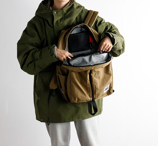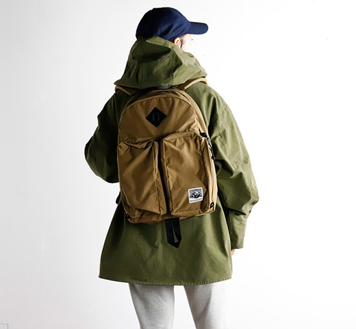 MT.RAINIER DESIGN(マウントレイニアデザイン)新作定番再入荷です。フロントに大きな二つのポケットを施した特徴あるスタイルのデイパック。使い込むほどに味わいの出る綿ナイロンの混紡素材、通称ロクヨンクロスを使用しています。