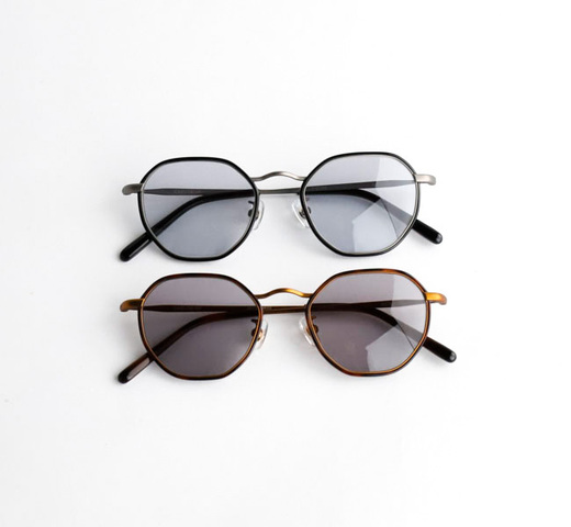 ビート詩人のウイリアム・バロウズやアレン・ギンズバーグの友人である「ウイリアム・ガーバー」より。 少し天地がある多角形のフォルムで段差のある特殊なリムにセルロイドを巻き付け立体感のあるメタルフレームに仕上げた。2021FWで発表したモデルをサイズアップしたサングラスモデル。
