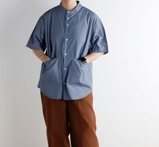 nisica定番のルーズフィットバンドカラーシャツ 半袖。